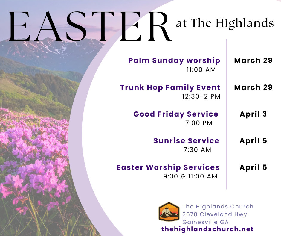 Please RSVP to operations@thehighlandschurch.net or sign-up sheet at the welcome area.